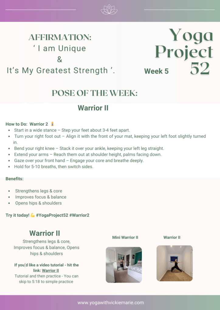 A powerful pose to build strength, balance, and confidence. Step into Warrior II and embody your inner resilience!